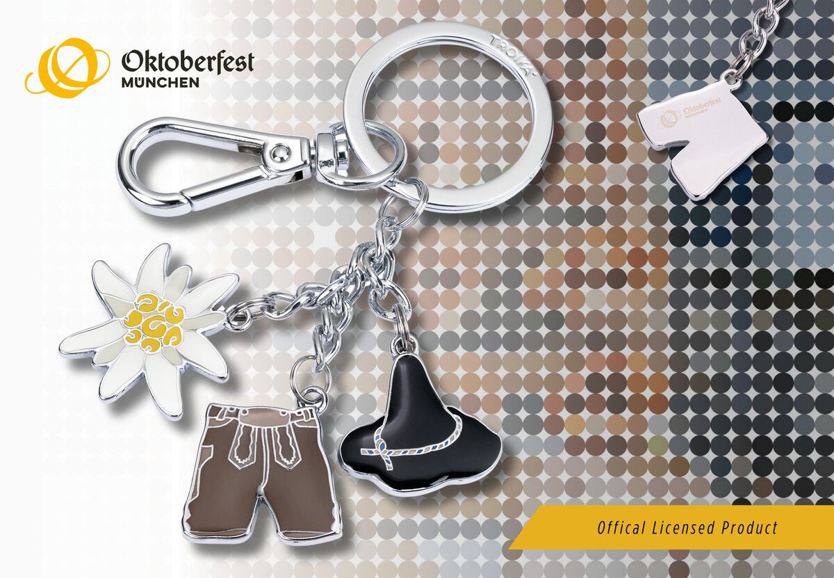 Troika LEDERHOSE OKTOBERFEST keychain is the perfect companion for your visit to your local Oktoberfest or celebration of German culture and traditions. This charm keyring and pocket pendant with carabiner features three classic Alpine symbols the rustic elegance of lederhosen , edelweiss and a traditional Seppel hat. The detailed engraving with the "OKTOBERFEST" logo on the back gives it a personal touch. Made from high-quality enamel and silver chrome-plated metal. Get this exclusive accessory now and show your love for the world's biggest folk festival in style.