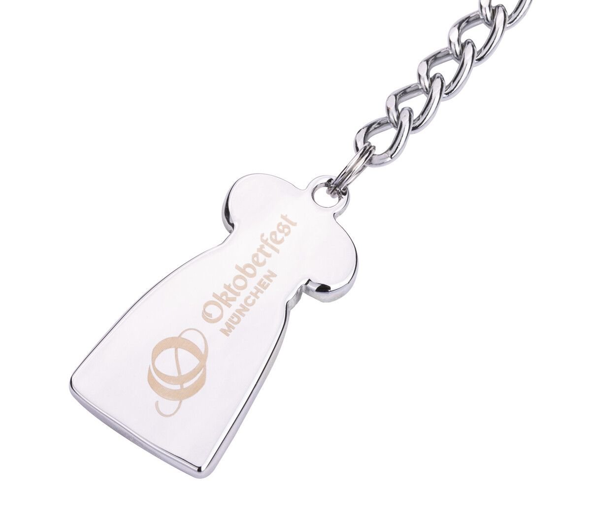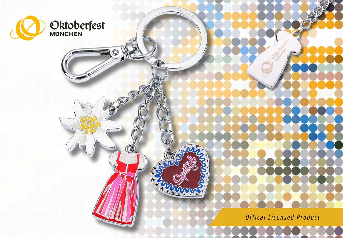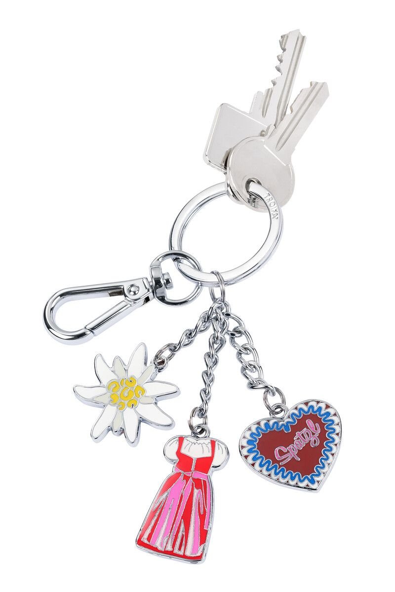 Troika DIRNDL OKTOBERFEST OKTOBERFEST keychain is the perfect companion for your visit to your local Oktoberfest or celebration of German culture and traditions. This charm keyring and pocket pendant with carabiner features three classic Alpine symbols the traditional Dirndl dress , edelweiss and a traditional gingerbread heart. The detailed engraving with the "OKTOBERFEST" logo on the back gives it a personal touch. Made from high-quality enamel and silver chrome-plated metal. Get this exclusive accessory now and show your love for the world's biggest folk festival in style.